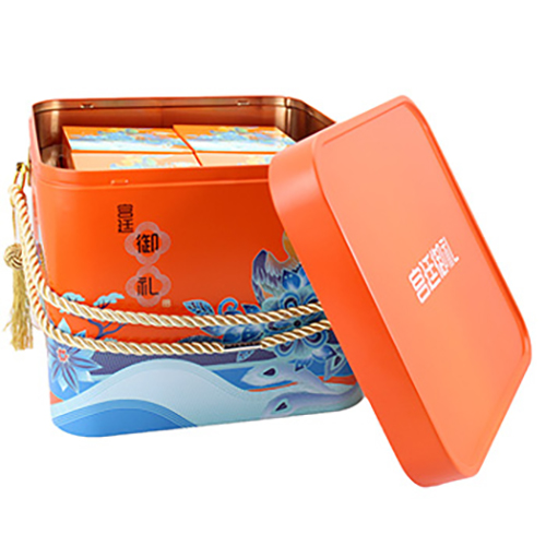• 方形紅蓋手提蛋卷錦繡華禮盒鐵盒_馬口鐵食品鐵盒包裝定制工廠